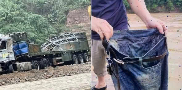Chiếc quần, thắt lưng và chìa khóa xe của tài xế xe container được tìm thấy.